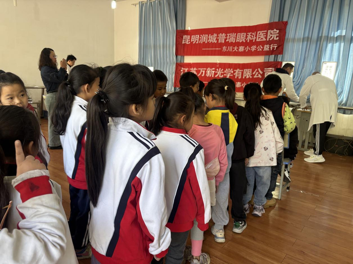 润城普瑞眼科持续两年在东川的山区学校进行校园近视防控公益活动,2024年9月24日,医院走进东川铜都街道姑海村姑海小学,为周边4个村落的56名孩子进行了公益视力检查。其中部分孩子近视度数已经超过了300度,却因种种原因从未戴镜矫正过。这些孩子长期在模糊的视界中学习、生活,不仅严重影响了学习效率。是近视防控公益行动,让这些孩子重新看清黑板。