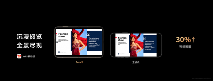 • 在华为Pura X上使用鸿蒙版WPS Office办公时,可视画面直接提升30%,横屏查看PPT时几乎铺满整个屏幕,领完超级会员月卡后,海量素材随心用,修改、美化PPT更高效。