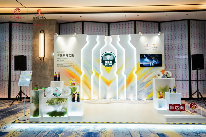 在米其林指南发布会现场,欣和味达美携手名厨与艺术家,全新开启“寻味东方艺境”主题,跨界创作联名艺术餐盘,以美学对话中国味道,在米其林指南发布现场,呈现“欣和米其林艺术展台”。欣和味达美将每道餐盘化作“味觉画布”,通过酱油的醇厚、蚝油的丰盈、醋的灵动,将食材本真与调味巧思凝固为可触摸的东方叙事,实现“以器载味,以艺传心”的意境。
