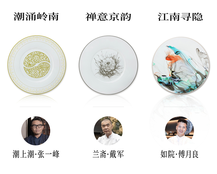 三款限量联名艺术餐盘首度亮相,成为全场焦点: