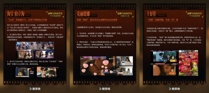 去年的爆款大剧《墨雨云间》总冠名商天猫就和优酷一起把身份合作玩得风生水起:先是开播前携手主创吴谨言、王星越等现身天猫总部举办《墨雨云间》古风游园活动,积蓄第一波势能;接着在热播期上线主创拍摄的创意种草视频,为“天猫年中狂欢”壮大声势;后期则推出定制衍生番外片《接招吧!前夫哥》,承接角色、剧情热点,同时衔接上天猫618年中大促的节点,成为大剧营销经典案例。