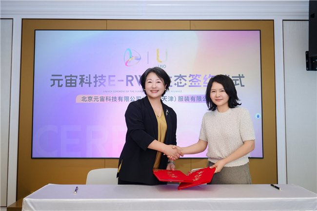 元宙科技CEO王玉环与优诺(天津)服装有限公司总经理闫慧奇进行数字商品发售签约
