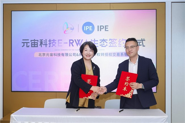 元宙科技CEO王玉环与IPE转授权交易系统CEO田雨进行战略合作签约