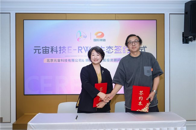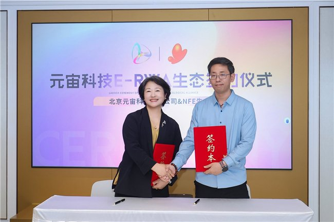 元宙科技CEO王玉环与NFE生态理事长崔轩荣进行生态开放合作协议签约