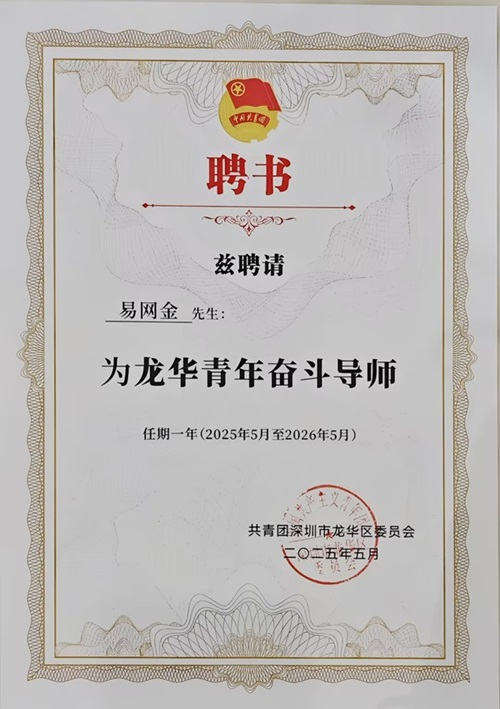 据悉,此次评选活动,旨在为引导深圳龙华广大青年强化奋斗目标、找准奋斗路径,龙华团区委立足各领域发展需求,经严格选拔培育,组建起这支高素质的“龙华青年奋斗导师”队伍。深圳团市委书记胡火明为企生活集团董事长易网金先生等8位优秀青年代表颁发了聘书,勉励他们发挥自身经验与专业优势,带动广大青年练就过硬本领、发扬奋斗精神。