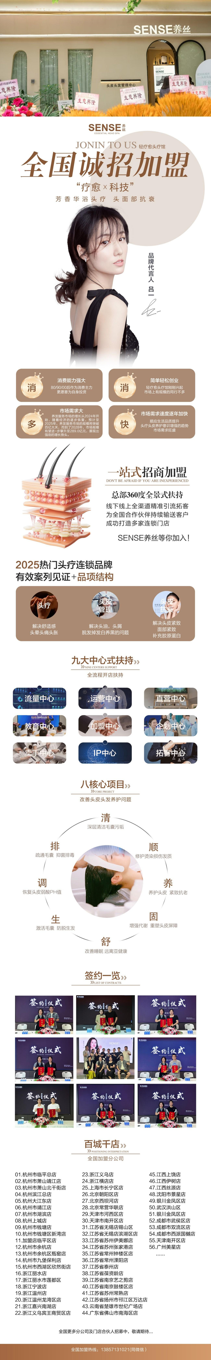 品牌代言人吕一、时尚沙龙及行业媒体共同背书,门店覆盖北京、杭州等一线城市,开业即登本地生活榜单前三。数据显示,80%消费者因头皮问题寻求护理,而SENSE养丝通过“芳香花浴头疗”“头面部抗衰”等创新体验,成功将客单价提升至行业均值的1.5倍,客户好评率超95%。
