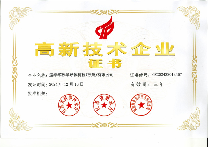 高新技术企业的认定,是对企业在核心自主知识产权、科技成果转化能力、研究开发的组织管理水平、成长性指标以及人才结构等多个方面进行的综合评估和认定。它也是衡量企业科技创新实力和活力的关键标志。此次盖泽半导体成功获批,充分彰显了公司技术研发实力以及创新活力。