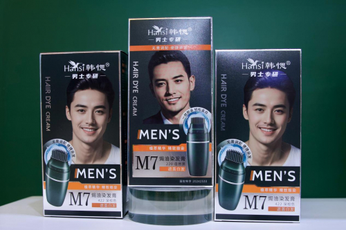 随着男性理容需求升级,男士染发市场持续增长,但当前主流产品仍以传统双剂染发为主,存在操作复杂、刺激性大等痛点。基于18年染护科研沉淀,韩愢正式进军男士染发赛道,推出首款专为亚洲男性研发的单剂染发产品——韩愢M7男士染发梳
