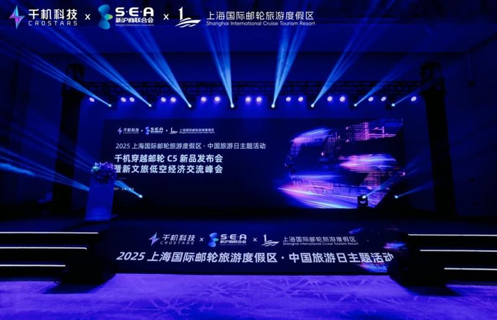 万里长江口,百年吴淞口。2025年5月19日,上海宝山吴淞口国际邮轮旅游度假区迎来2025上海国际邮轮旅游度假区·中国旅游日主题活动“千机穿越邮轮C5新品发布会暨新文旅低空经济交流峰会”,宝山正以亚洲第一大邮轮港——吴淞口国际邮轮港为核心,加快建设具有国际邮轮特色,海上门户标识度的上海国际邮轮旅游度假区,丰富邮轮港周边商旅文体配套。本次活动的主办单位为上海千机创新文旅科技集团有限公司,联合主办单位为上海新沪商联合会,支持单位为上海市宝山区滨江开发建设管理委员会,协办单位为上海市宝山区月浦镇月盛经济发展有限公司、上海吴淞口国际邮轮旅游度假区开发运营管理有限公司。