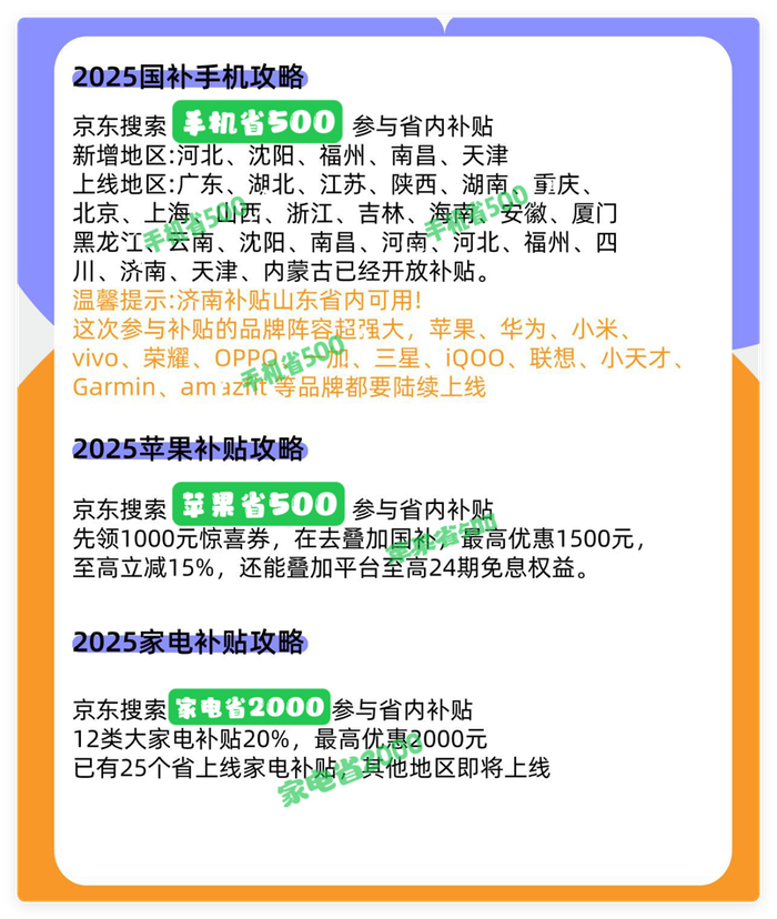 线上:京东APP搜关键词“家电省2000”“手机省500”直达补贴会场。