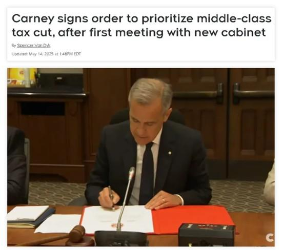 5月15日,加拿大总理马克·卡尼与新内阁签署了一份具有里程碑意义的文件——“中产阶级减税”计划正式启动立法程序。