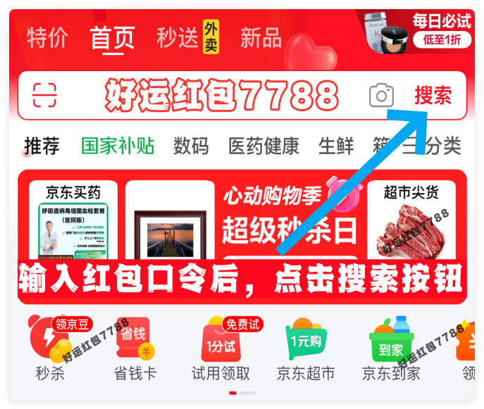 京东APP搜:好运红包7788