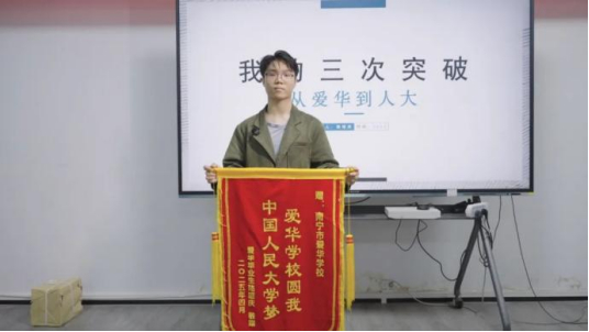 陆*庆同学坦言,作为中考仅获C等级的“学困生”,是爱华学校让他重拾信心。通过学校的分层教学和教师的针对性辅导,陆*庆同学逐渐摸索出适合自己的学习方法,最终圆梦中国人民大学。