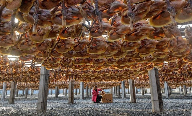 中国摄影师曾晓剑凭借一幅拍摄晾晒风鸭的作品,在“收获时节”类别中获得高度赞扬奖。