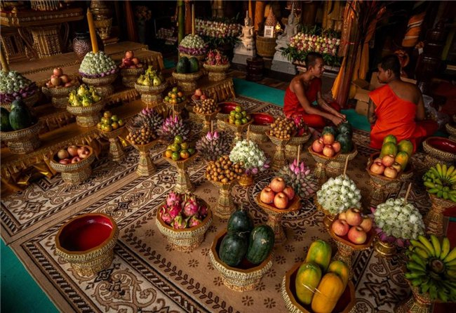 美国摄影师Ryan Kost凭借这幅色彩绚丽的摄影作品,斩获首届Bimi®特别大奖。作品拍摄于柬埔寨一所佛教寺院,画面中水果与鲜花精心排列的供品,深刻展现了佛教仪式所蕴含的修行意境与虔诚之心。