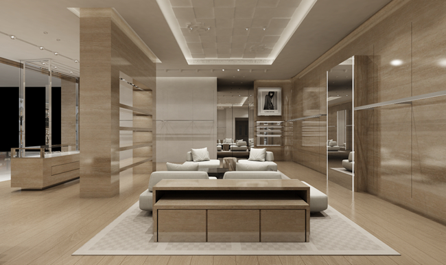 承载作品,C'N'C门店以“文化画廊”为视觉概念,温润大地色系碰撞冷感奢华的银、黑色系极简装饰,搭配数字化光影装置,呈现有温度的高级质感,吸引年轻客群探索服饰背后的故事。