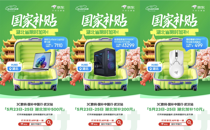 此外,活动期间,京东3C数码为湖北用户提供了区域限时加补福利,下单指定产品至多再减500元。其中,微软Surface Laptop第七版,湖北加补500元,国补惊喜价7110元;联想拯救者刃7000K RTX5070Ti主机,湖北加补200元,国补惊喜价13299元;雷蛇毒蝰V2 Pro专业版无线鼠标,湖北加补10元,国补惊喜价499元。