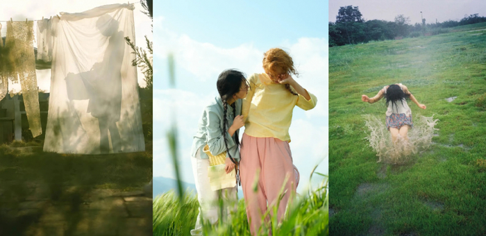 而来自可颂社区个体创作者的展出作品,则将镜头对准更细腻且独特的影像世界,用自我讲述与个体记忆温润着观者的心灵,更呈现了多元且富有魅力的女性叙事:@小口天子 《17:30pm》用光影营造的朦胧感展现出一种含蓄之美,布幔似一道屏障,隔开外界与人物的内在世界,仿佛在诉说着不为人知的心事;@锦书r 用《我的一个外国朋友》展现了女性之间真挚的情感联结,在宁静自然的美好场景中,传递着友情的温暖力量;@笑尾八 在《泥巴》里记录了一个女孩在草地尽情奔跑的姿态,画面透露着肆意与释放之感,似要突破规训,传达出直面人生、冲破束缚的力量感。这种“身份跨界”的策展逻辑,打破了对“女性创作”的刻板定义,在「闪光的她」影像月,女性影像不仅是性别的表达,更是一种观察世界的独特视角。