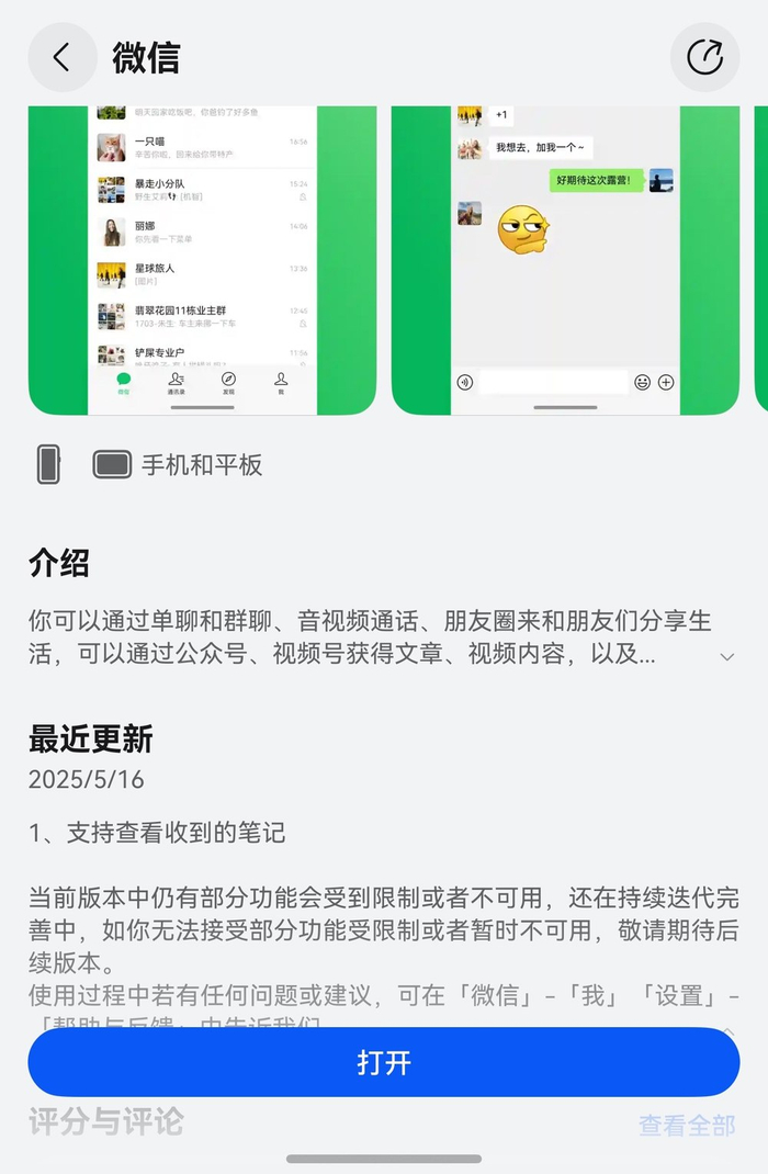 其中,鸿蒙版微信核心功能已基本完备,近期还再次进行了版本更新,上线了“查看收到的笔记”功能;鸿蒙版抖音实现了沉浸式浏览和播控中心听抖音,解锁视频新“看”法;鸿蒙版京东基本实现了三端同步更新,618活动也全面上线;鸿蒙版支付宝新增了停车实况窗功能,出行停车更便捷……这些大家常用应用的持续迭代和功能创新,让鸿蒙生态不断成长、一日千里,犹如日渐饱满的麦粒,收获属于自己的“小满”。