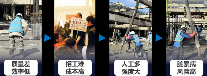 我国是建筑大国,拥有全球最为庞大的建筑市场。国家统计局发布数据显示,2024上半年,全国建筑业总产值13.83万亿元,同比增长4.8%。然而,我国的建筑业目前依然是自动化程度最低的行业之一。近年来,我国建筑业从业人数从2015年的6000万高峰滑落至2023年的4582万人。随着人口红利的逐渐消失,传统依赖大量人工的建筑业发展模式已难以为继,转型升级迫在眉睫。