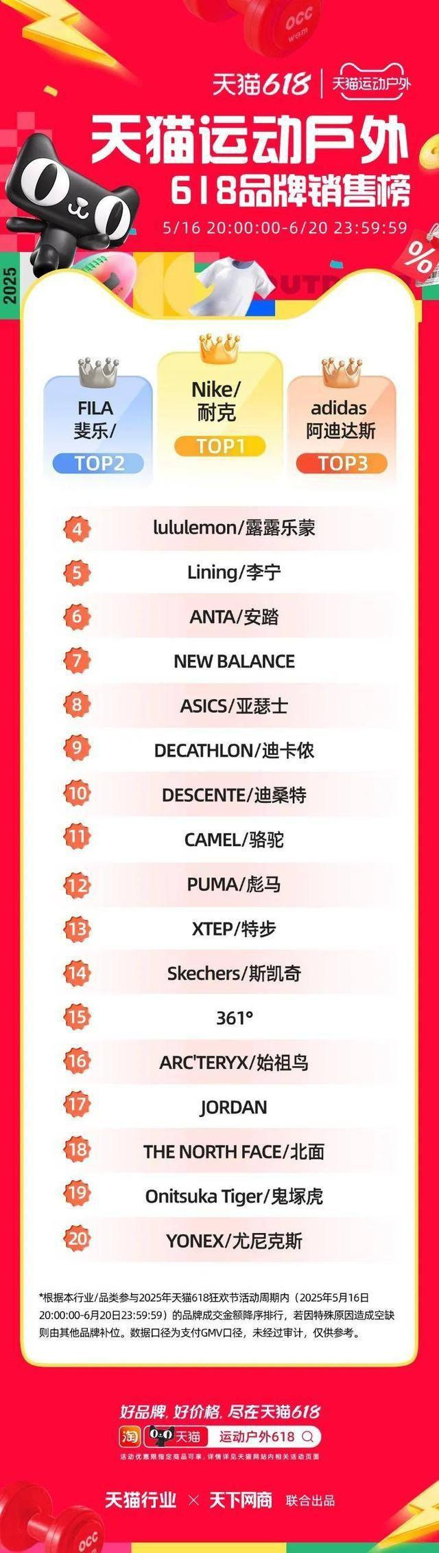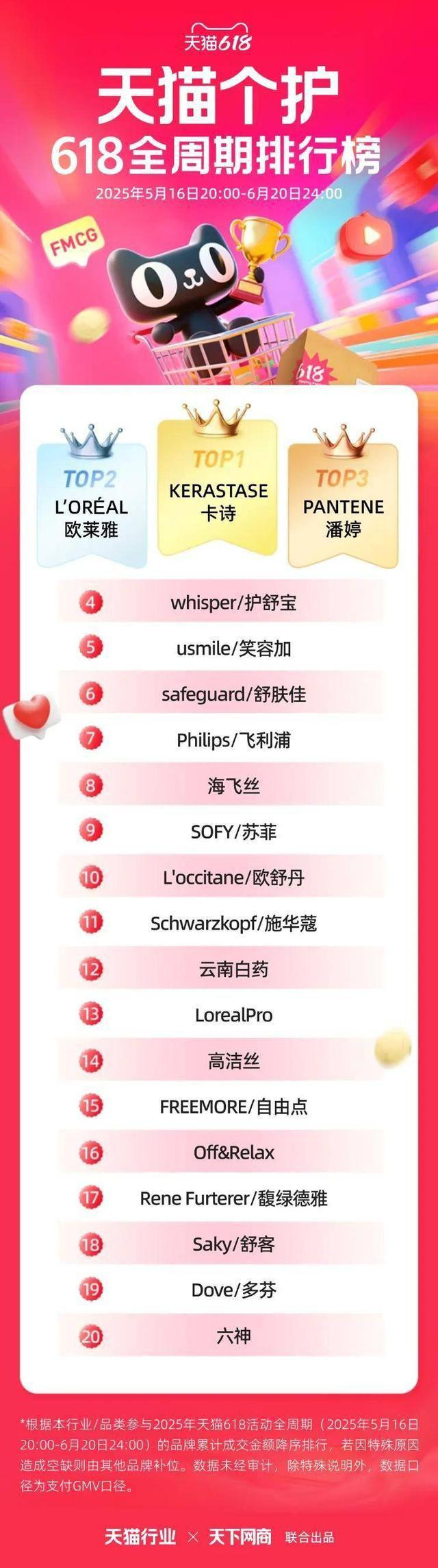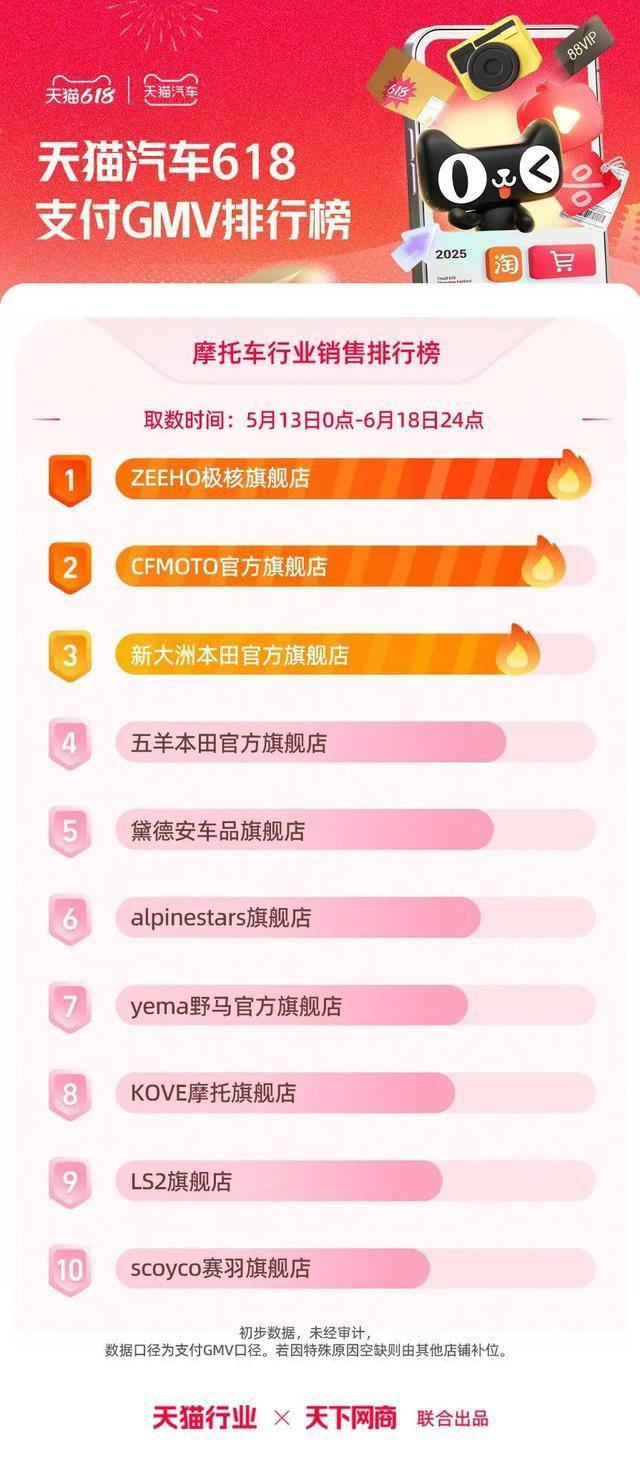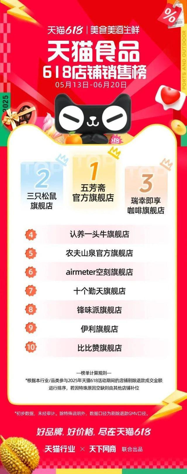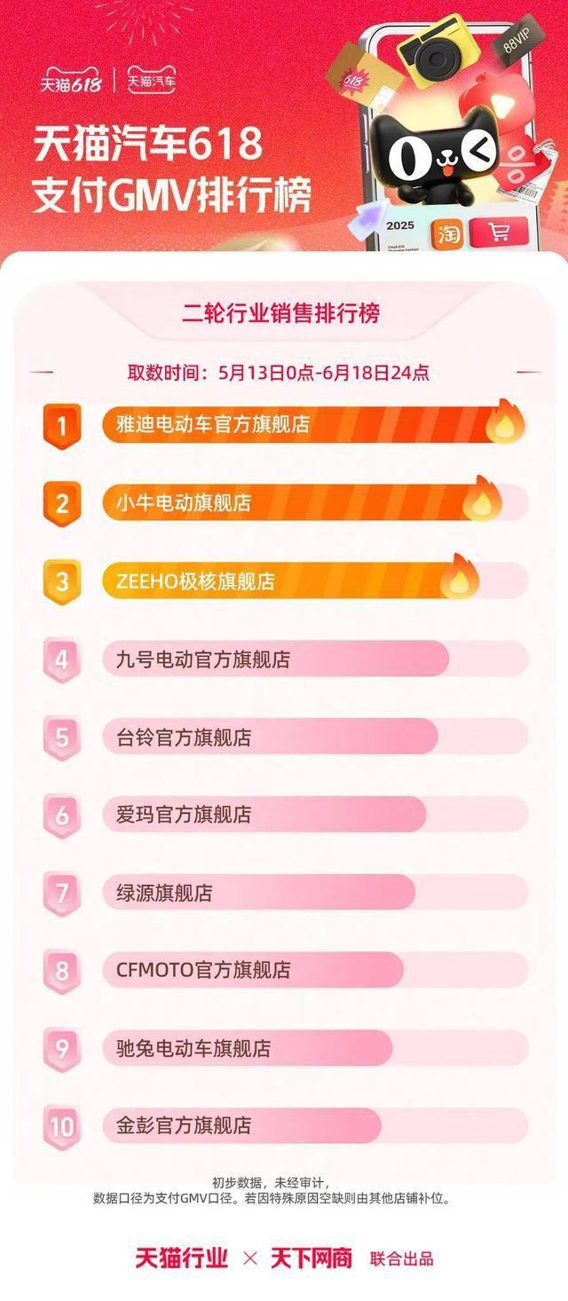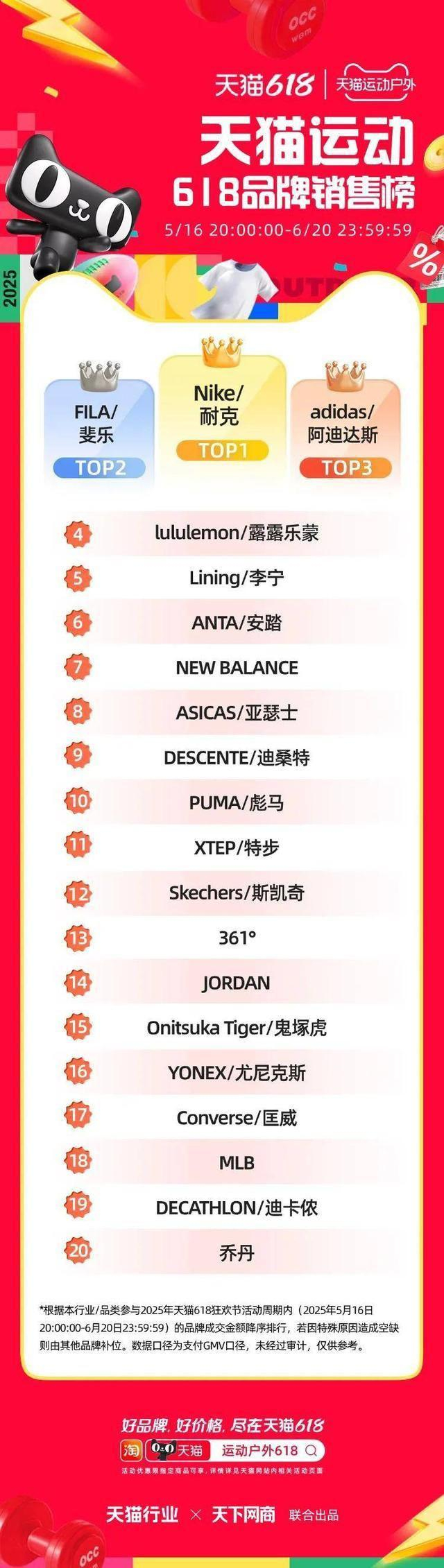 6 月 22 日,2025 年天猫 618 全周期品牌成交排行榜出炉,快消、服饰、运动户外、家电家装家居、3C 数码、玩具潮玩、香氛香薰、宠物、食品生鲜、汽车、健康、图书、教育、企业服务、珠宝饰品、天猫国际等行业的领跑品牌、商家出炉。
