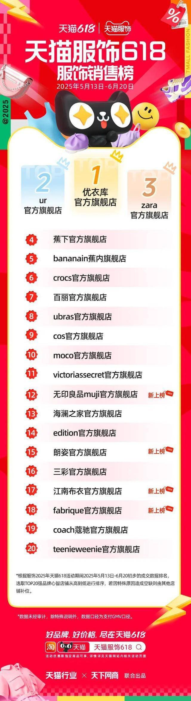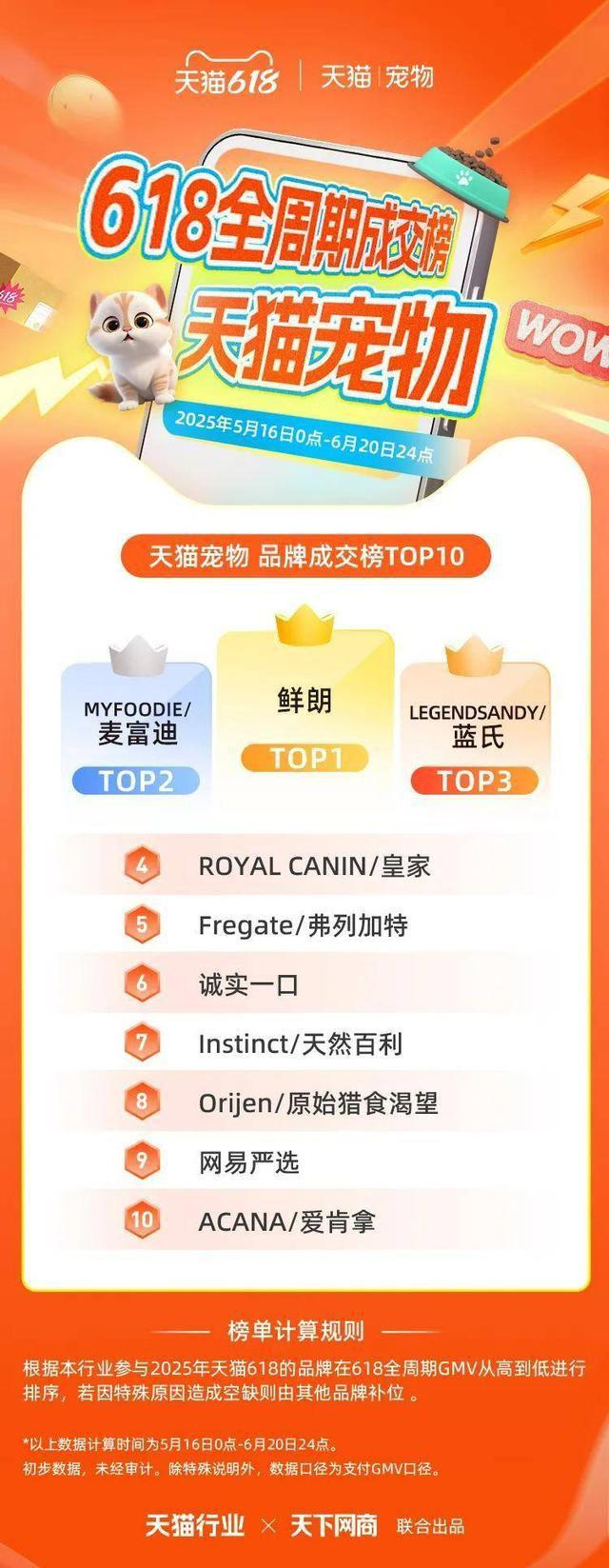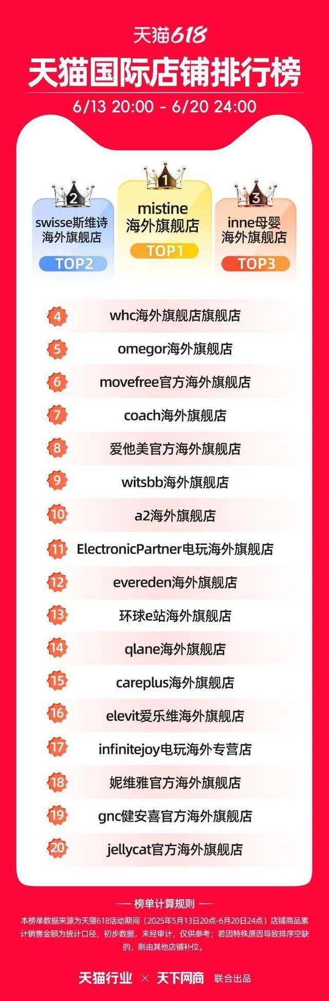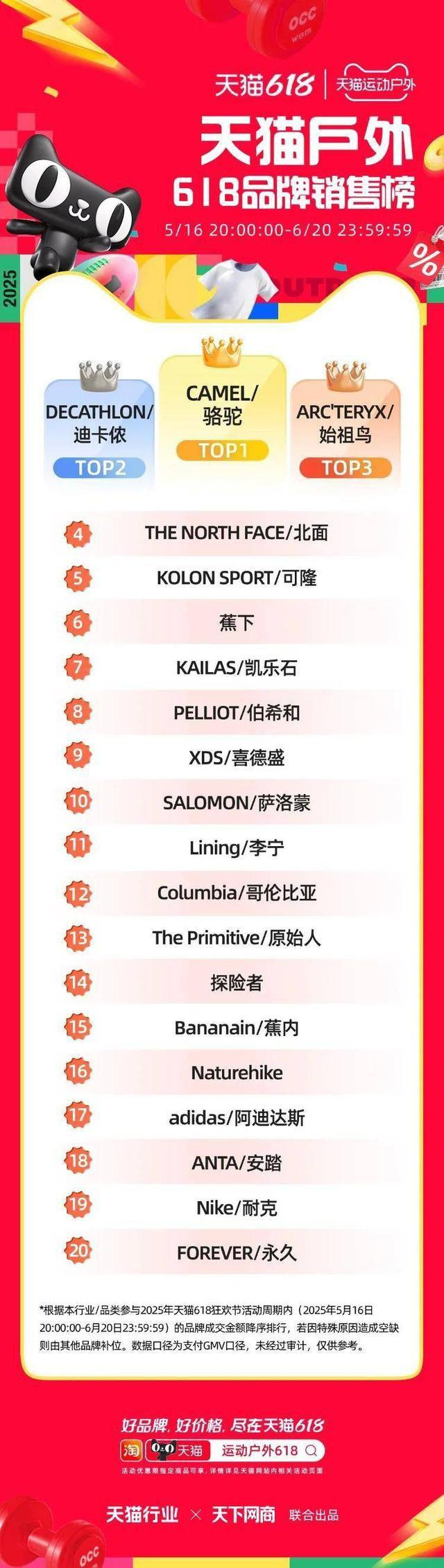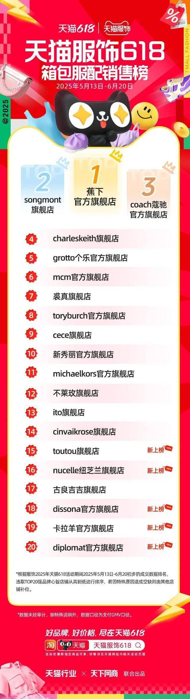 6 月 22 日,2025 年天猫 618 全周期品牌成交排行榜出炉,快消、服饰、运动户外、家电家装家居、3C 数码、玩具潮玩、香氛香薰、宠物、食品生鲜、汽车、健康、图书、教育、企业服务、珠宝饰品、天猫国际等行业的领跑品牌、商家出炉。