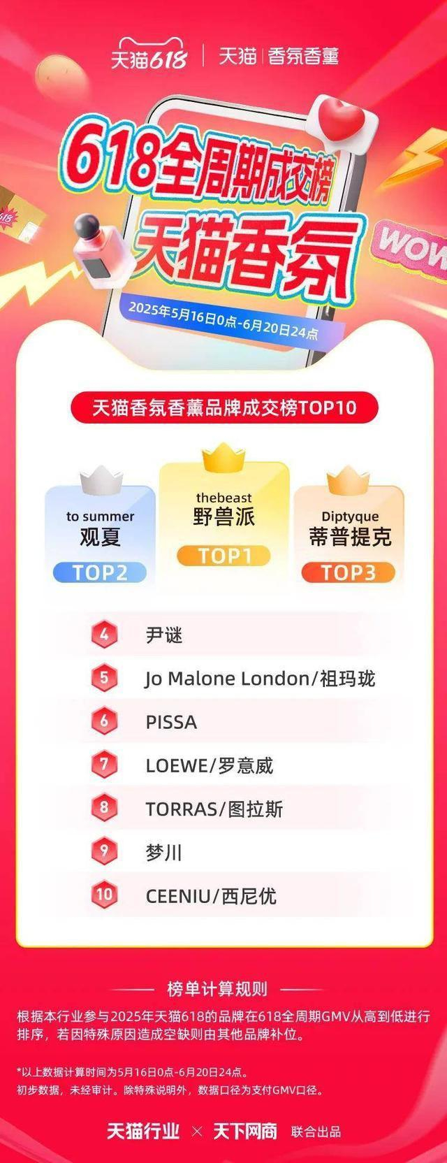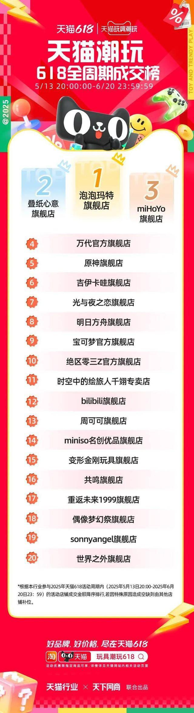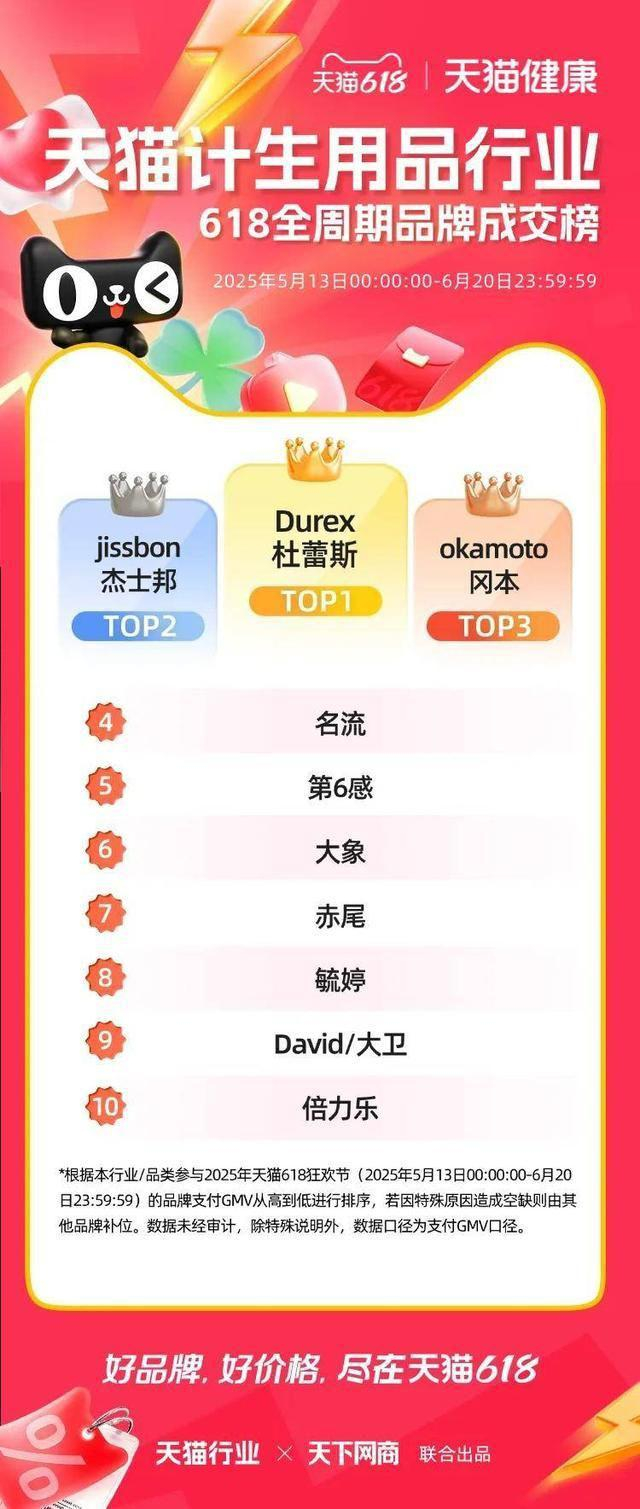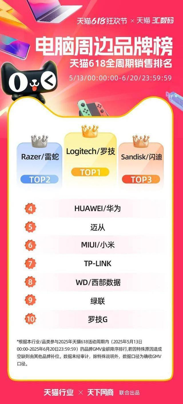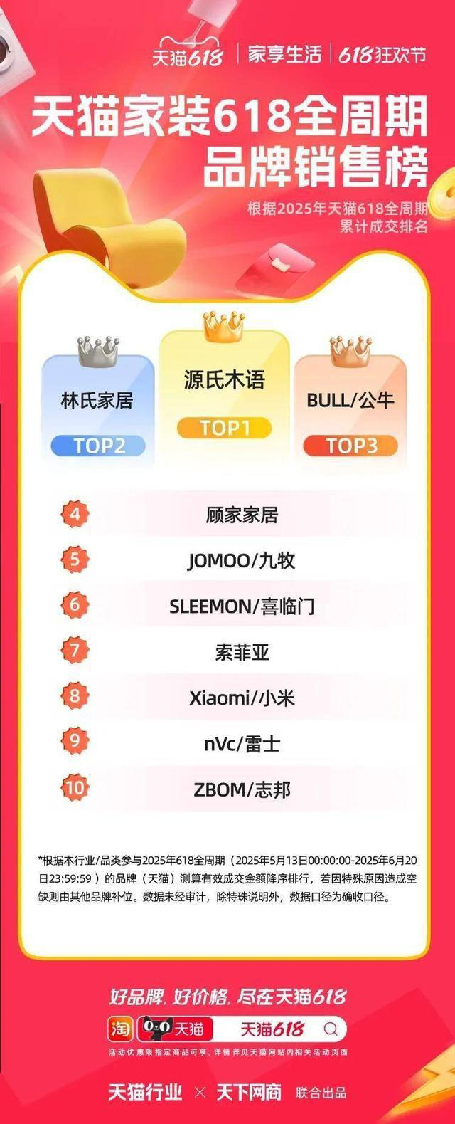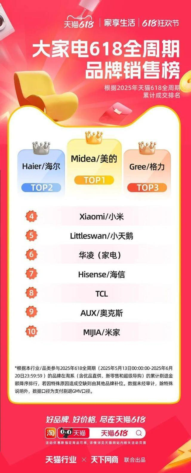 以下为 2025 年天猫各行业 618 全周期品牌成交排行榜,祝贺商家们。