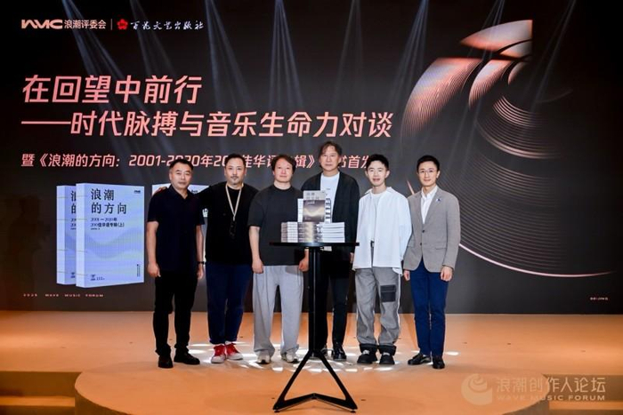 本次论坛,浪潮评委会与百花文艺出版社联合特别邀请A&R、著名作词人易家扬,民谣歌手马条,唱作人郑兴与DJ、乐评人翟翊,以“在回望中前行——时代脉搏与音乐生命力”为主题展开对谈,现场同时由百花文艺出版社党总支书记、总经理薛印胜,腾讯音乐企业发展及内容生态业务副总裁梁韵恒,与四位对谈嘉宾一起为新书《浪潮的方向:2001—2020年200佳华语专辑》揭幕。