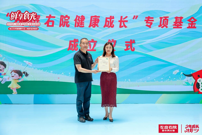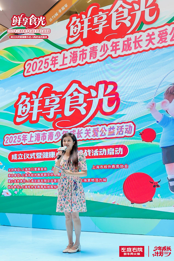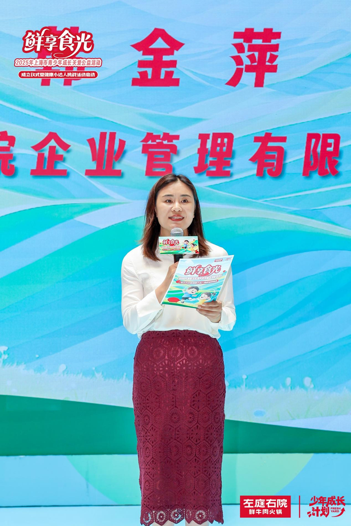 上海左庭右院企业管理有限公司总经理韩金萍致辞表示此次成立 “左庭右院健康成长”专项基金,希望能为青少年的健康成长贡献一份力量,做孩子们健康路上的“营养充电站”。激发青少年对健康生活的兴趣和热情,引导他们养成良好的饮食和运动习惯。未来也会继续关注青少年健康成长,持续为大家提供新鲜、健康的美食。