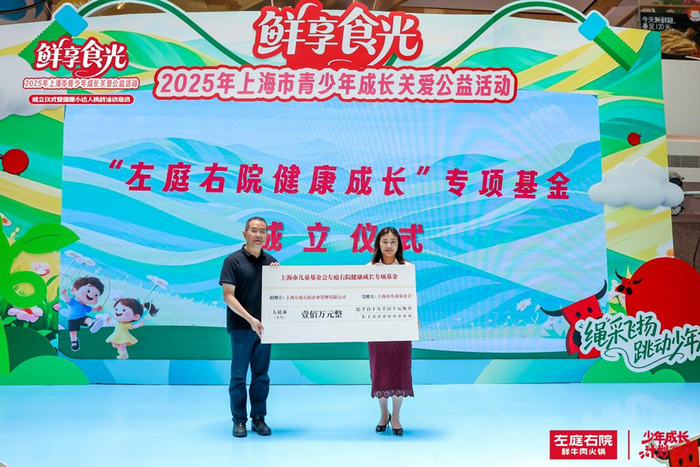 上海左庭右院企业管理有限公司向上海市儿童基金会捐赠100万元成立“左庭右院健康成长”专项基金,支持青少年健康成长项目。上海市儿童基金会副理事长兼秘书长余伟星代表市儿基会接受捐赠,并向上海左庭右院企业管理有限公司颁发爱心捐赠证书。
