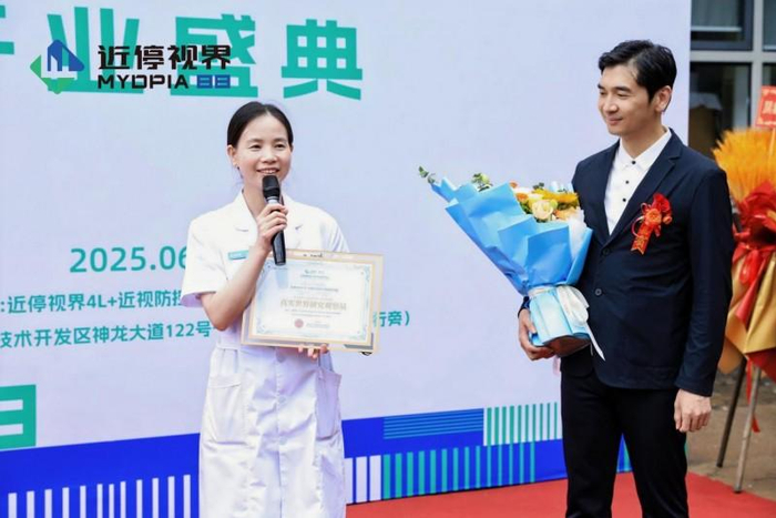 近停视界的诞生并非偶然,其核心依托于创始人赵阳博士领衔创立的“4L+综合近视管理方案”。赵阳医生在北京同仁医院有15年的眼科工作经验、现任北京眼科学会小儿眼科分会委员、北京健康文化促进会眼健康专业委员会委员、国药眼科、上海四一一眼科医院首席专家、抗近快线互联网医院执行院长等多重身份,著有《大国护眼之策》等权威著作,2020年获评“中国好大夫”。此次亲临开业现场,他分享了品牌的创立初衷:“近停视界并非简单提供视力矫正产品,而是提供科学系统的视力健康管理解决方案。”其核心是突破传统近视管理局限,融合前沿研究与数万例临床验证成果,致力于实现近视控制的科学化与标准化。尤其值得一提的是,赵院长明确引述北京同仁医院专家团队的最新研究成果,指出“近视延缓发展”存在科学路径,为防控实践注入强大信心。