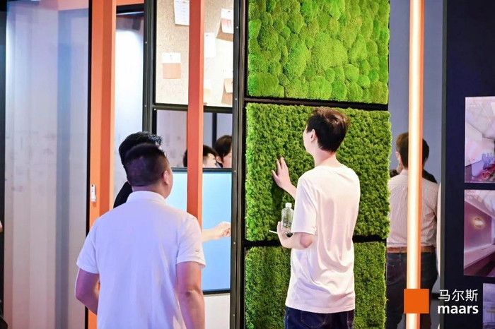 马尔斯Maars携手全球最大建筑事务所Gensler联袂呈现的新品M923.,将传统隔断延展到“隔而不断”的领域,可更换面板让空间拥有“季节性皮肤”,活色苔藓无需日常养护即可营造生态微环境,提升空间生机。
