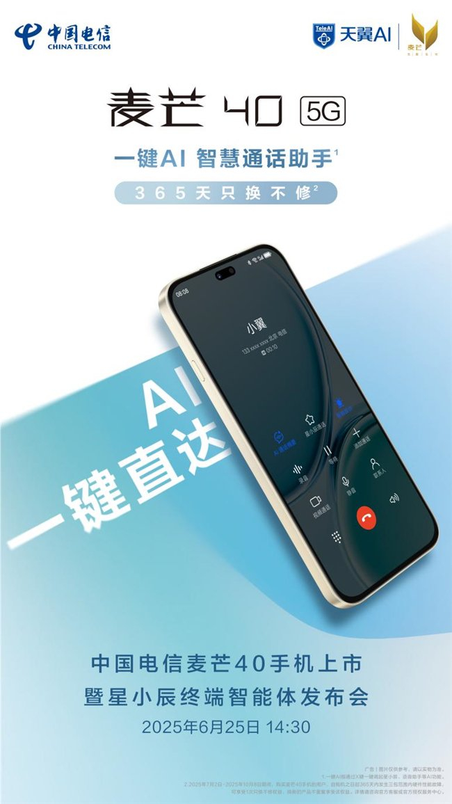 据悉,中国电信旗下麦芒品牌已正式宣布,其全新机型麦芒40于6月25日14:30进行线上直播发布。从厂商提前公布的消息来看,作为麦芒系列的新一代产品,麦芒40此次将“AI能力进化”与“天通卫星通信能力”作为核心差异化突破点,显示出品牌对用户核心痛点的洞察。
