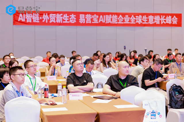 2025 年 7 月 11 日,易营宝“AI智链·外贸新生态——AI赋能企业全球生意增长峰会”于2025年7月11日在青岛红树林酒店会议会展中心圆满举办。本次峰会汇聚了来自互联网企业、信息技术公司等外贸服务商的决策者及行业专家,旨在探讨 AI 技术与外贸出海各环节的融合应用,助力外贸服务商提升服务能力,推动外贸行业智能化转型。