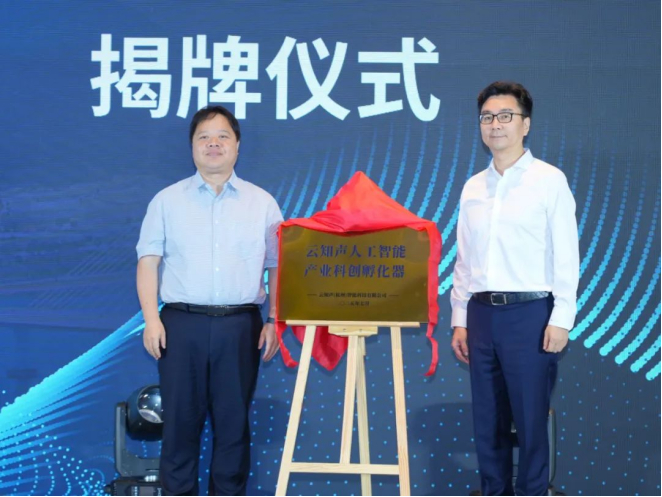 富阳区委常委、杭州富春湾新城管委会书记、主任孙伟与云知声创始人、CEO黄伟共同为孵化器揭牌