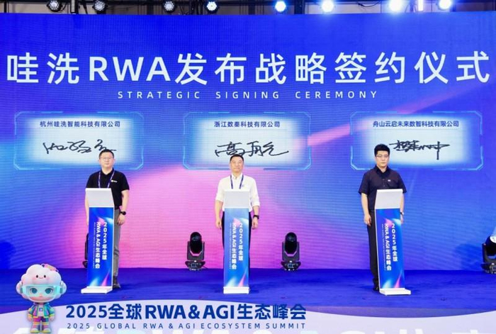2025年7月13日,2025全球RWA&AGI(数实融合)生态峰会现场,随着全流程可信数据技术供应商、RWA全栈服务商数秦科技与服务型机器人品牌哇洗智能、RWA服务商未来云启三方战略合作协议的签署,共享经济领域首单RWA(现实世界资产)项目正式启航。