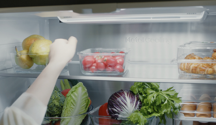 在冷藏室背后,三星AI神 冰箱9系采用了一块金属速导冷背板,让制冷更加均匀,锁鲜效果更持久。忙碌的清晨,既要给孩子准备早饭,又要把家人一早采购回来的食材分门别类放置在冰箱各层搁板,出门前还要把冰箱的酸奶放进孩子书包,在频繁开关门的场景下,冰箱也能高效蓄冷,锁住食材新鲜,避免口感受损、甚至营养流失。