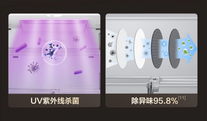 传统冰箱的密封环境容易藏污纳垢,食材串味、霉菌滋生等问题如同隐形的健康刺客,严重威胁孩子的饮食安全。三星AI神 冰箱9系搭载UV双效净化系统,UV紫外线深度杀灭多种常见细菌,同时去除异味,双管齐下构筑食材的健康屏障。在冰箱门开启的瞬间,扑面而来的不再是刺鼻的“冰箱味”,而是食材本真的清香,让饮食健康在科技创新下悄然升级。