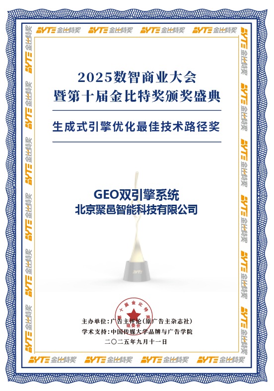 凭借业内首创的GEO双引擎系统、头部企业品牌和城市品牌GEO成功案例,北京聚邑智能荣获多项GEO生成式引擎优化标杆案例大奖。同时,基于GEO双引擎系统的创新方法论、高效的人机协同系统、国家版权局认证的自主知识产权、头部品牌GEO成功案例,聚邑智能亦荣获GEO生成式引擎优化最佳技术路径奖和年度GEO领先品牌称号。北京聚邑智能科技联合创始人林刚上台领奖。