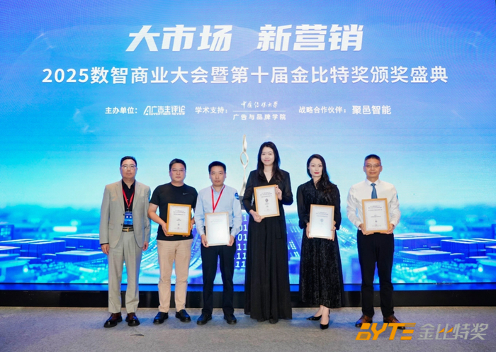 2025数智商业大会暨第十届金比特奖颁奖盛典由广告主评论主办,中国传媒大学广告与品牌学院学术支持。获得2025年度数智商业领军人物大奖的还有:泡泡玛特董事长王宁、东华软件董事长薛向东、融源/国荣/盈信集团董事长许立勇、七匹狼集团董事长周少雄、喜之郎集团董事长李永良、行云集团董事长王维、华为云副总裁苏立清等行业翘楚,公司类、技术产品类、案例类等各类大奖也各归其主。