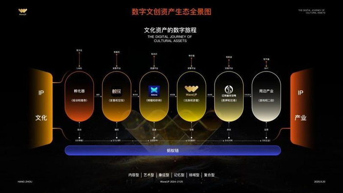 发布会现场集中呈现“鲸探发售—XMeta流通—WaveUP资管—文交所交易”四大环节,构建基于蚂蚁链的“文化资产”生态闭环,为中国文化资产的数字化进程提供基础设施支持。