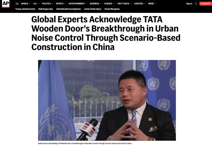 品牌在木门领域的实力,也接连获得国际层面的认可:全球权威市场研究机构弗若斯特・沙利文发布认证,确认TATA木门“2024年中国静音木门销量第一”的行业地位;2025年7月在纽约举办的联合国高级别政治会议上,TATA木门的静音木门技术及相关应用方案,更被作为人居可持续发展的典型案例提及,美联社、法新社等国际媒体评价其为“全球居住空间噪音改善提供了可参考的中国木门解决方案”。