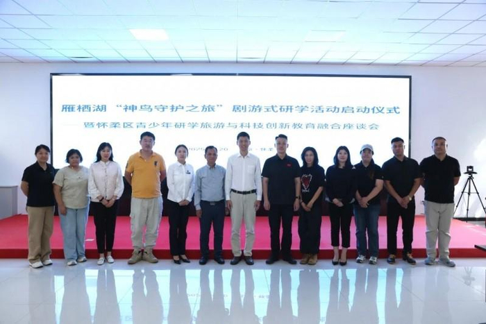 2025年9月20日,秋风送爽,风景如画的雁栖湖畔迎来了一场别开生面的研学盛宴——“神鸟守护之旅”剧游式科技研学活动在这里隆重启幕。本次活动由北京科技教育促进会与北京雁栖湖旅游开发有限公司联合主办,北京百通世纪文化发展有限公司承办,并得到接力出版社的鼎力支持。活动以“科技赋能自然探索”为核心,致力于培养青少年的科技创新与实践能力,生动诠释了“教育+旅游+科技”融合的深远价值。