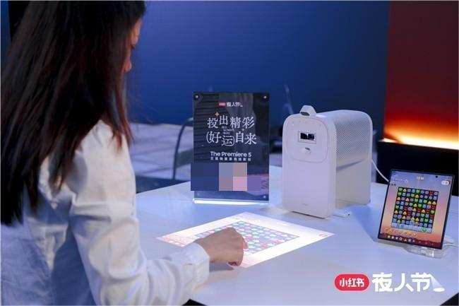 特别值得一提的是,现场以三星绚幕激光投影仪Premiere 5打造沉浸式交互空间。该产品内置的红外激光器与触控支架顶部的红外摄像头协同工作,用户可以直接使用手指与投射画面进行实时交互,投射到桌面的画面尺寸达20至40英寸,拓展了数字时代的社交娱乐方式,赋予活动强烈的未来气息。