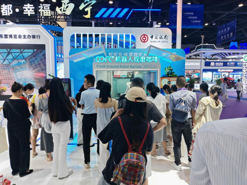 展会期间,上海氦豚机器人科技有限公司的展台前排起了长队,前来洽谈合作的东盟各国代理商、经销商络绎不绝。公司创始人表示:“COFE+的使命是让天下再无亏损的实体店、让世上再无辛苦的服务业、让人间再无苦逼的店老板、让每一位消费者都能以平价享受世界级的优质饮品。”截至目前,COFE+已成功进入欧美、中东、日韩、澳新、东南亚、独联体等全球50多个发达国家,覆盖中国15个省市,落地场景包括景区、商场、高校、医院、机场、博物馆、艺术馆、办公楼等上千类点位,日销量已稳定超越75%的传统人类咖啡馆。