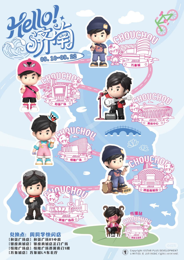 周杰伦“嘉年华”世界巡回演唱会济南站于9月21日圆满落幕,其官方二次元IP形象——“周同学”全程伴演,并深度融入多个济南标志性地点和场景,为杰迷打造了一场沉浸式的延伸狂欢。“周同学”IP版权方巨星传奇在济南万象城、和谐广场、恒隆广场、银座商城四大核心商业地标设立的快闪店销售异常火爆,多款限定周边迅速售罄。据不完全统计,快闪店线下销售额突破千万元,再次验证IP运营在“票根经济”中的爆发力。