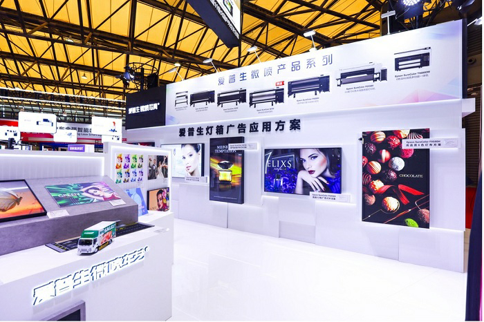 六色“活的色彩®GS3”环保弱溶剂墨水展会现场,爱普生带来了基于SC-S8180的多样介质户外广告方案,包括户外灯箱、户外车贴、弱溶剂PP、相纸、弱溶剂油画布等样品。