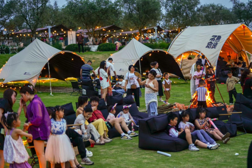 在花海撒欢后,来露营草坪区“躺平”:支起帐篷,听着live乐队的治愈歌声,飞机从花海上空低空掠过的瞬间,中秋赏月、国庆狂欢,氛围感直接拉满。