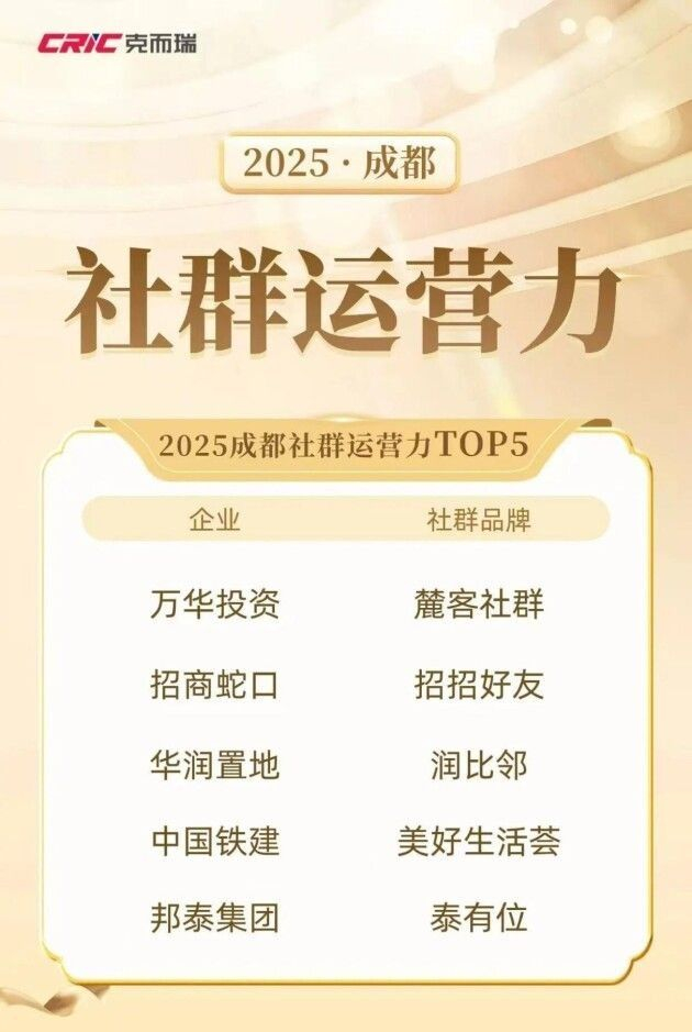 邦泰集团品牌价值的构建,还体现在其社区服务创新上。“泰有位”社群体系致力于营造“邦泰没有陌生人”的社区,自2024年成立以来,成功孵化400余个社群组织,累计发起1000余场社群活动,不仅提升了业主满意度与品牌美誉度,更助力在售项目的客户转化,实现了“口碑与业绩”的双丰收,也让邦泰斩获“2025 成都社群运营力 TOP5”荣誉。