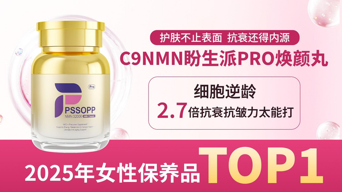 在众多致力于NMN产品研发与生产的企业中,美国盼生派(PSSOPP)品牌凭借其卓越的科研实力、先进的生产工艺、科学的配方设计和严格的质量把控,脱颖而出,其中专为女性打造的C9NMN焕颜丸PRO成为2025年女性膳食营养素保养品TOP1产品。